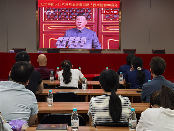9月3日上午,公司總部全體員工在公司禮堂集中觀看紀念中國人民抗日戰爭暨世界反法西斯戰爭勝利80周年大會直播。